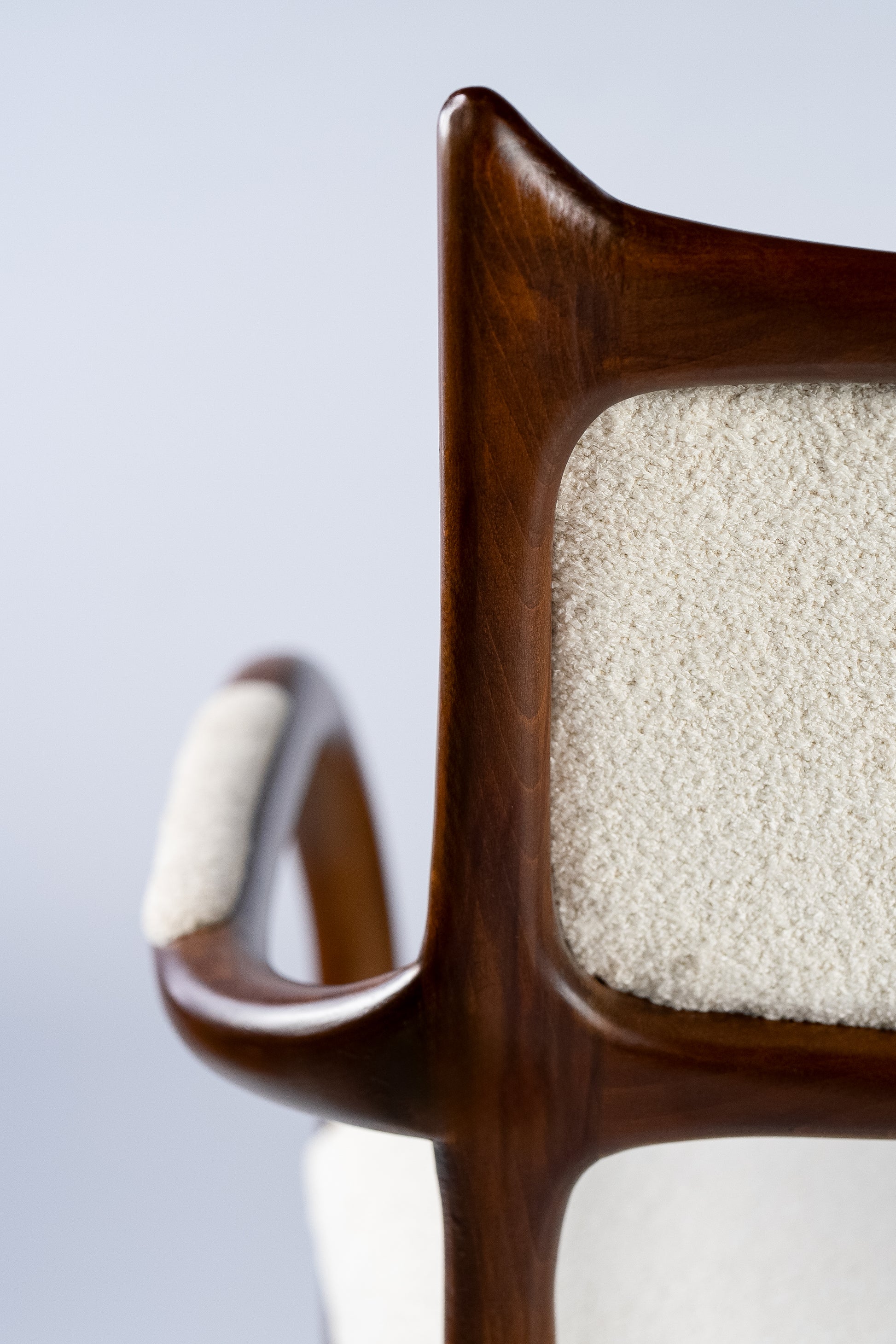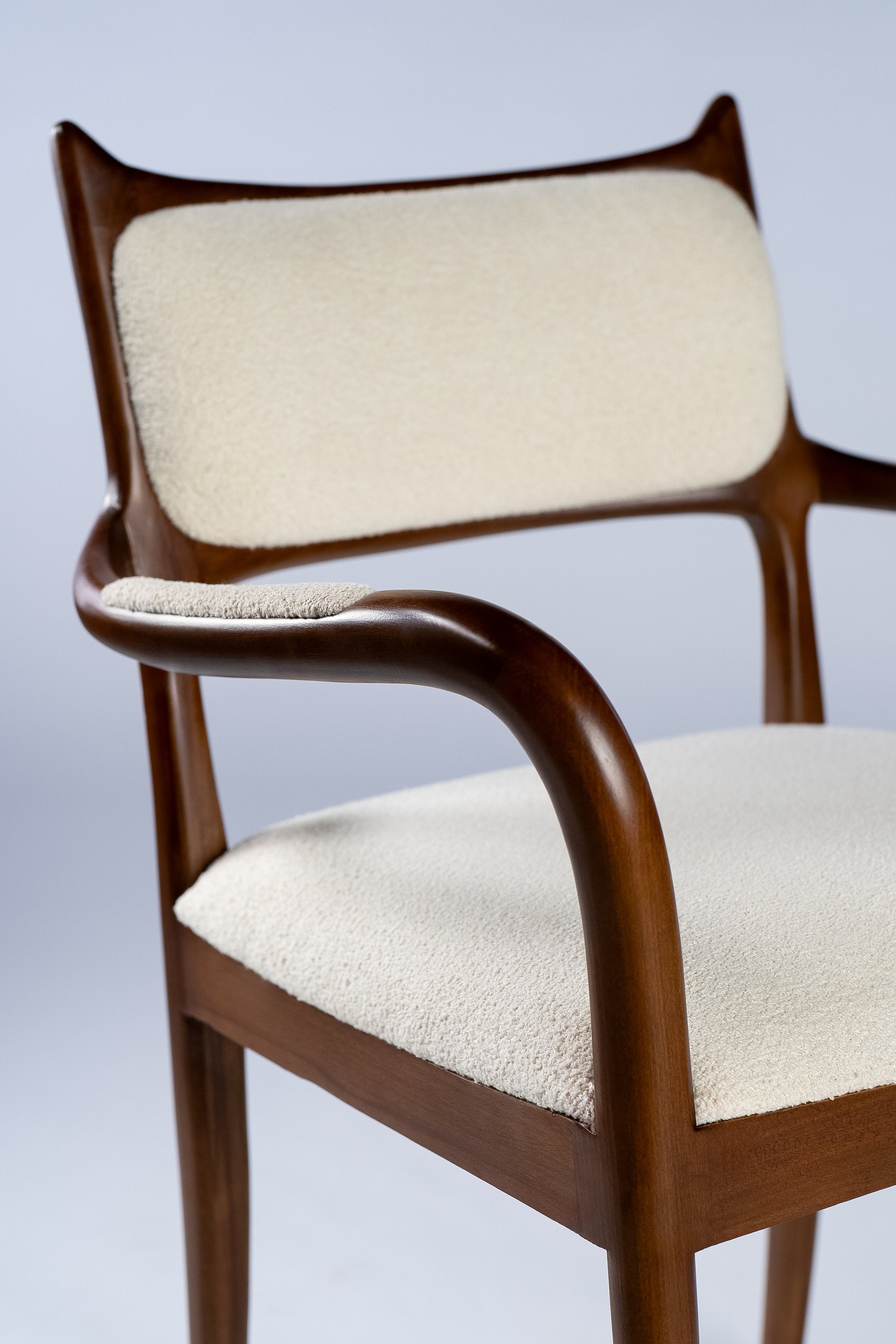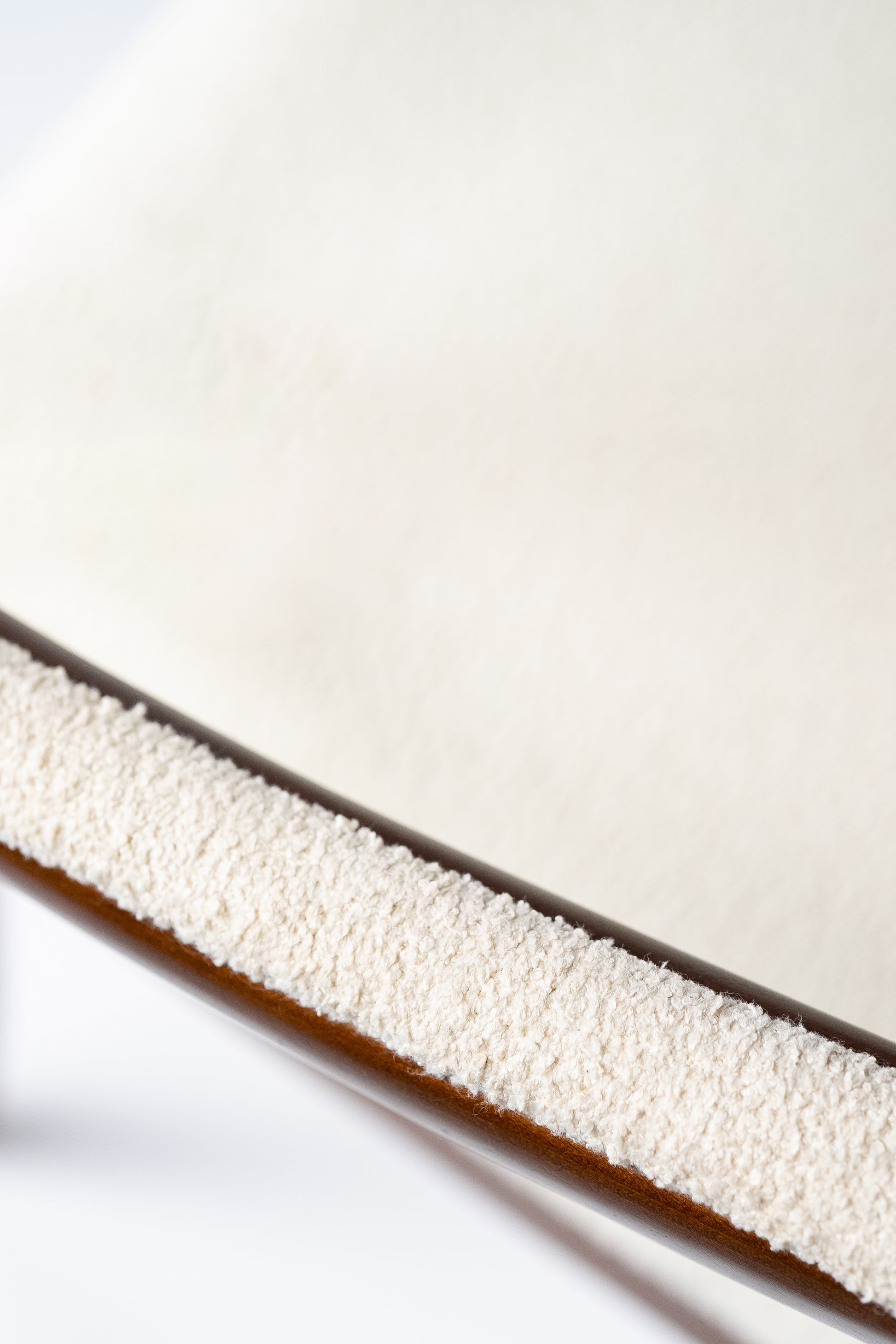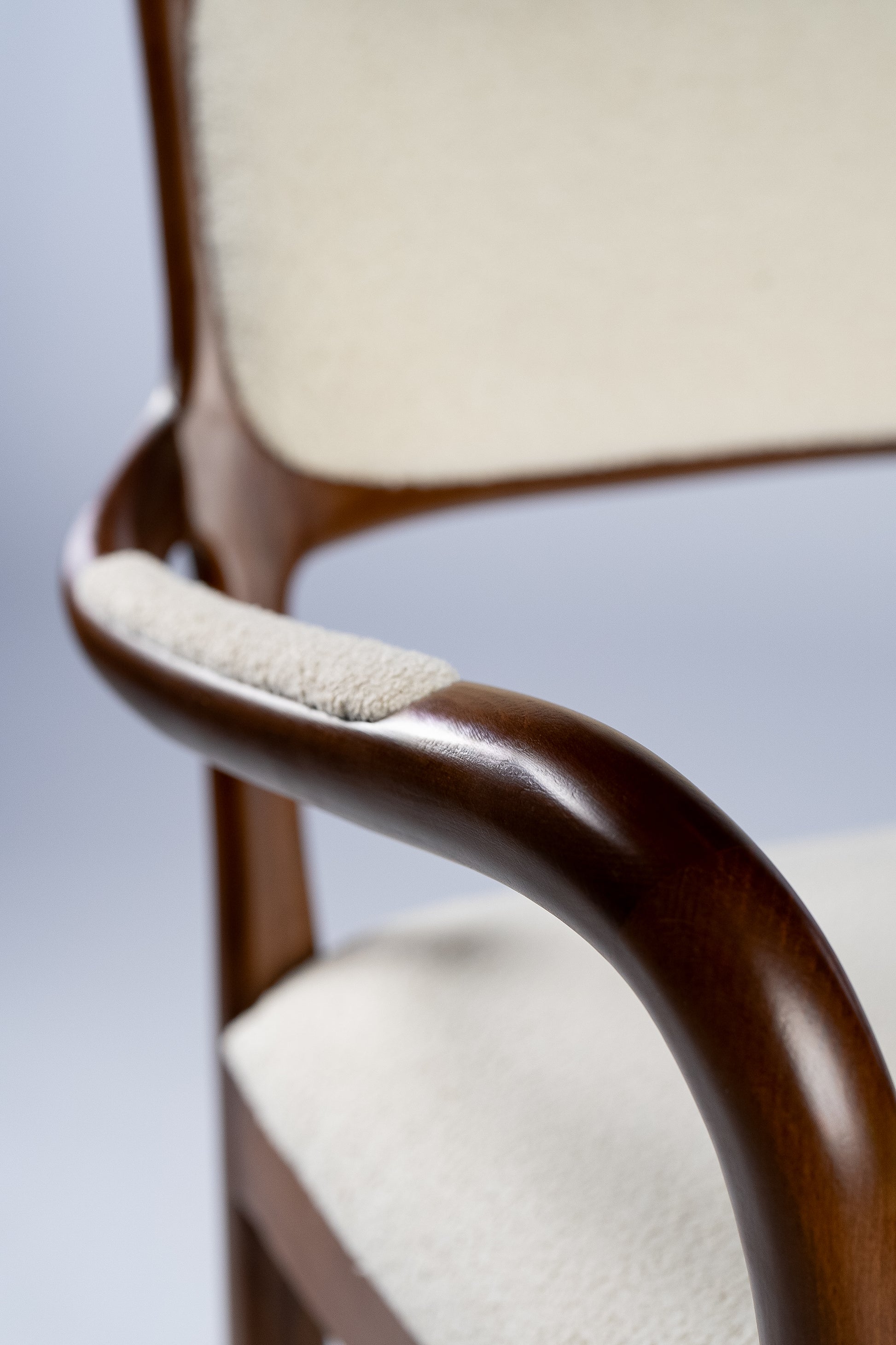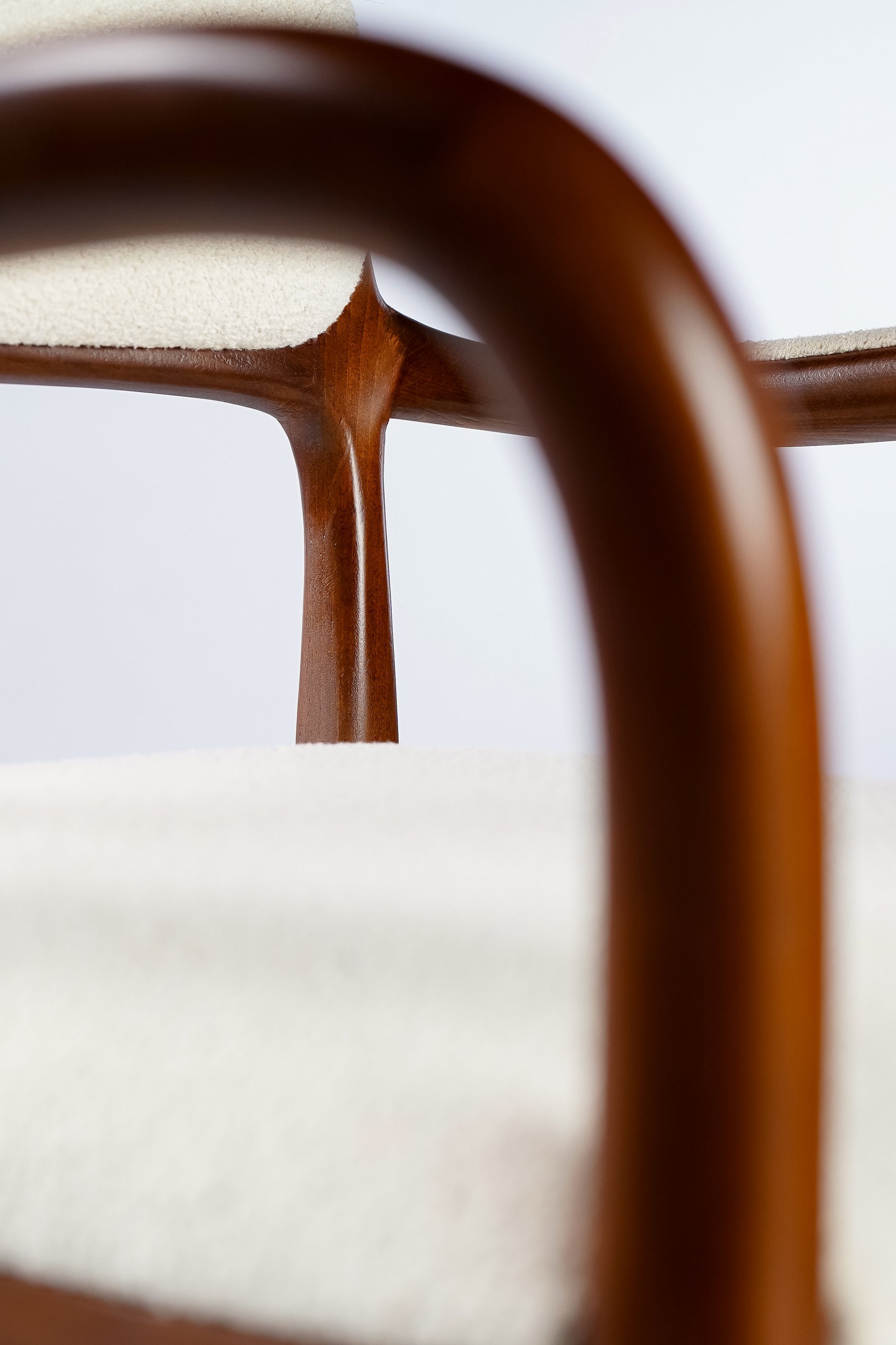 The seat and armrest slit are upholstered in premium fabrics, providing a harmonious blend of comfort and sophisticated texture.