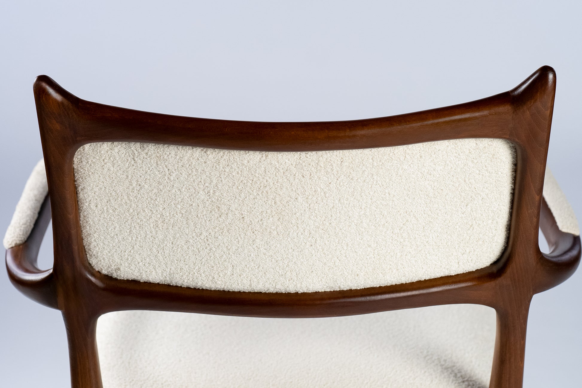 The innovative armrest features a unique slit that is upholstered for both visual interest and added comfort. This distinct element combines form and function, making it the first of its kind.